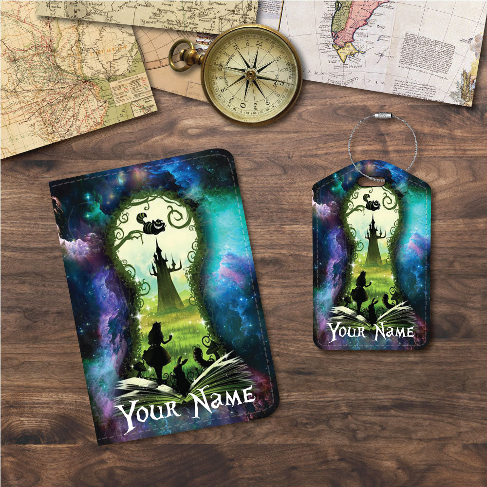 Alice wants to take you on an adventure! This passport holder, cover and luggage tags are made of PU fabric, and a trip to Wonderland. Whether you're crossing a continent or an ocean, Alice will make sure your journey is stylish and oh-so-memorable!