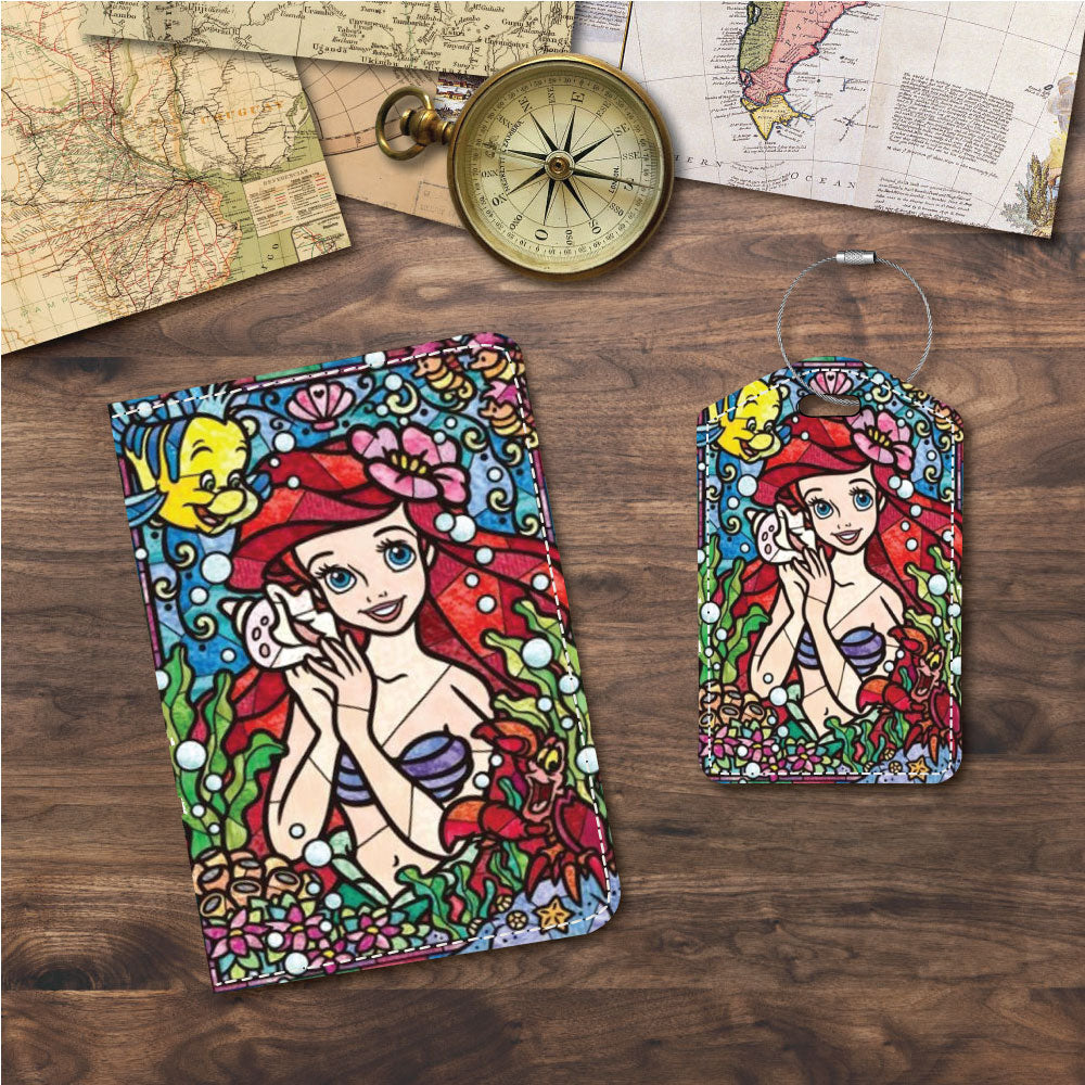 Travel in style with our Ariel "Stained Glass" passport holder and luggage tag set! Keep your passport safe and easily identifiable with this unique design. Perfect for any Disney fan, this set adds a touch of fun to every trip. (Bonus: luggage tag doubles as a handy luggage identifier!)