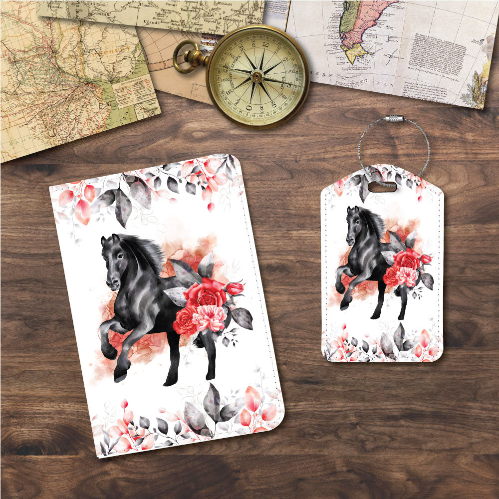 Get ready to trot around the world with the Black Horse set! With a passport holder and luggage tag both handmade and adorned with a beautiful floral pattern, your travels will be both stylish and unique. Don't be afraid to let your wanderlust run wild with this quirky set. Bon voyage!
