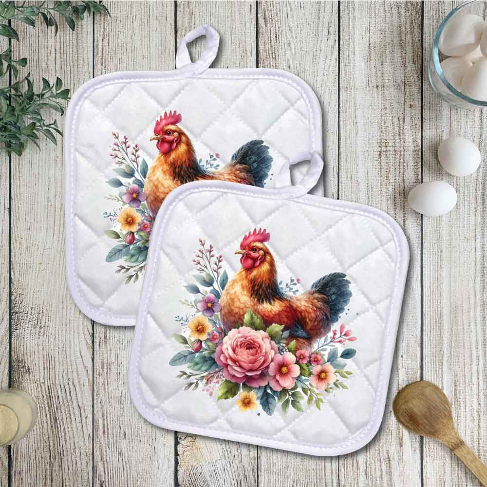 Floral Hen | Potholders, Trivets, Hot pads, Oven mitts, Heat resistant, and Washable