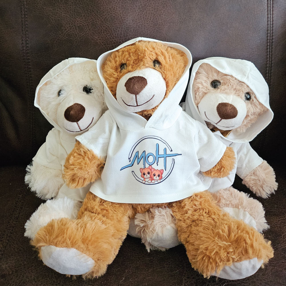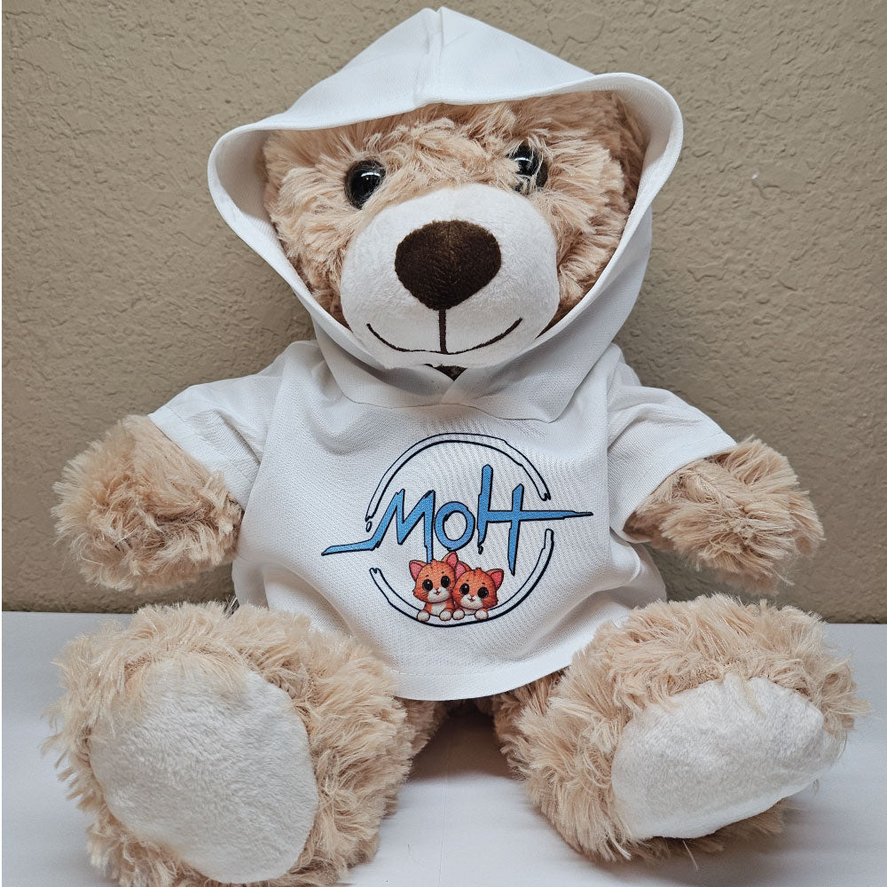 Help support MOH's stream and bring home the MOH Hoodie Teddy Bear, a cuddly companion that combines the charm of a classic teddy with the cozy style of a hoodie. Soft, plush, and perfect for hugs, this adorable stuffed teddy adds a playful touch to any room, making it a delightful friend for everyone.