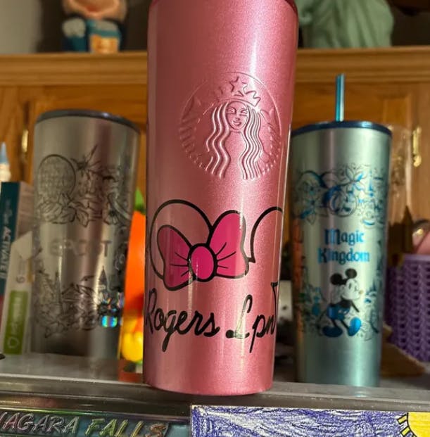 Add a touch of magic to your tumbler with our PERSONALIZED Mouse Ears Bow decal sticker. Show off your love for Minnie Mouse with a custom name on your tumbler. The perfect accessory for any Disney fan.