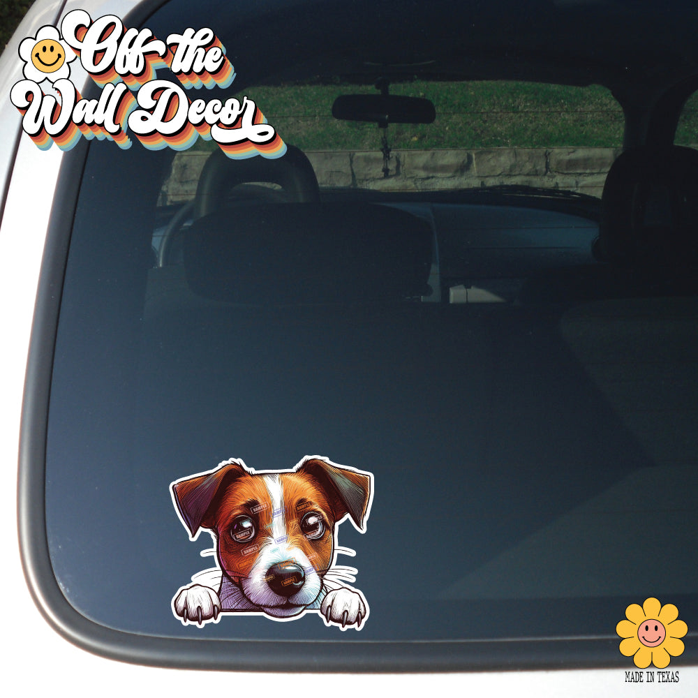 Peeking Jack Russell | Car/Truck Sticker, Automotive Decals, Car Bling Stickers and Decals, Pet Cat Dog Decal for Window