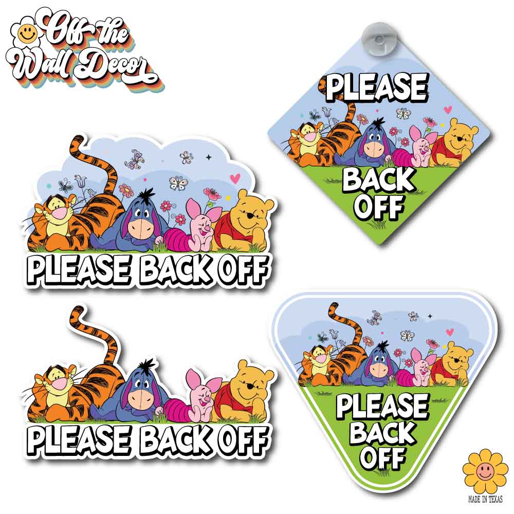 Please Back Off | Pooh Crew | Suction Cup Sign, Magnet OR Vinyl Decal Sticker