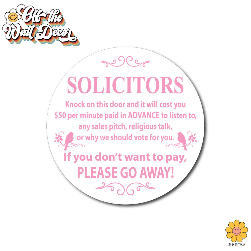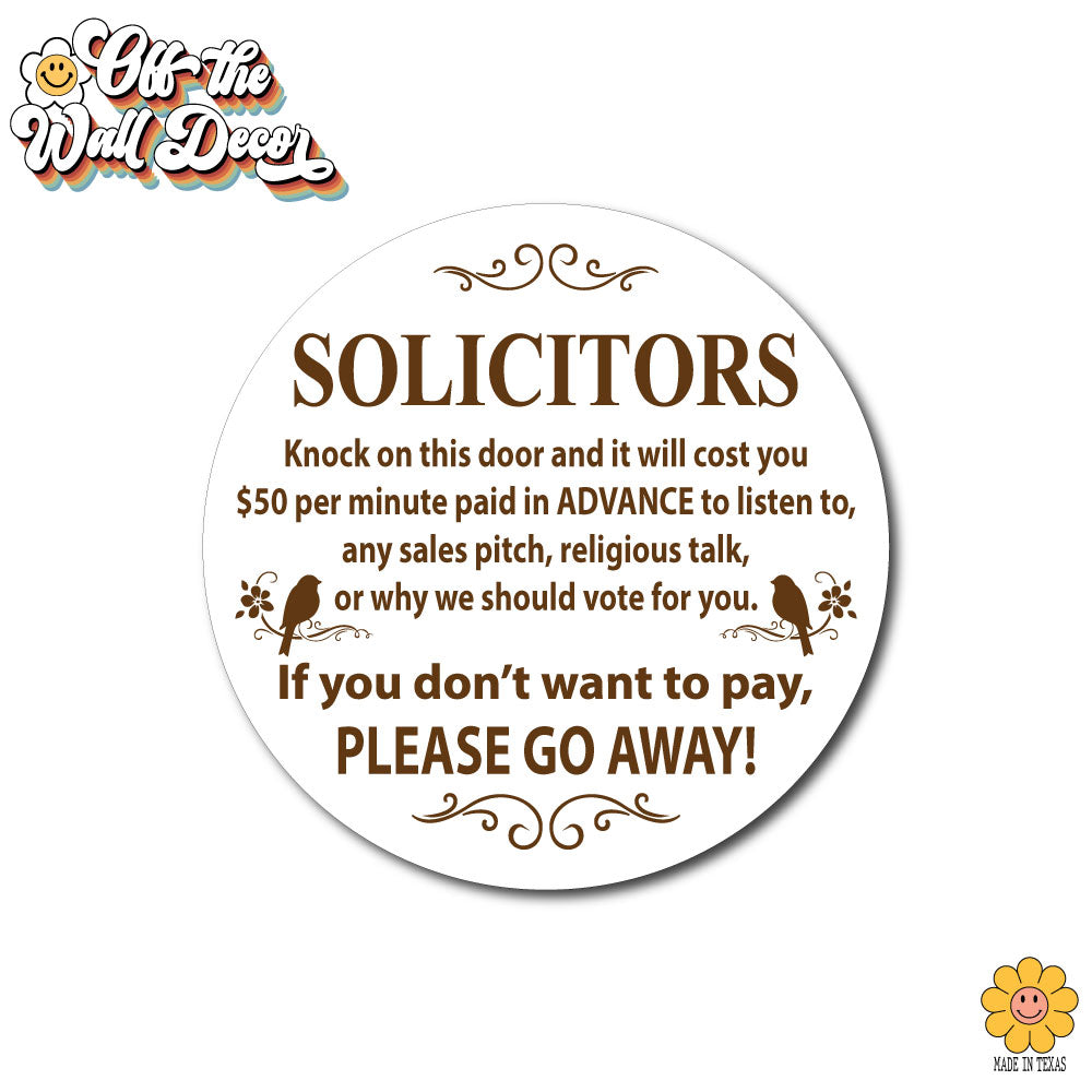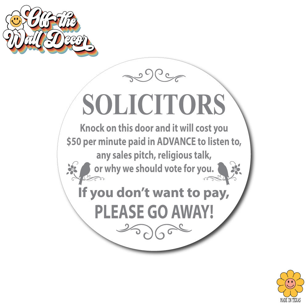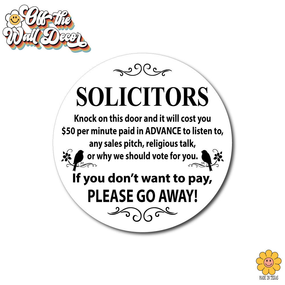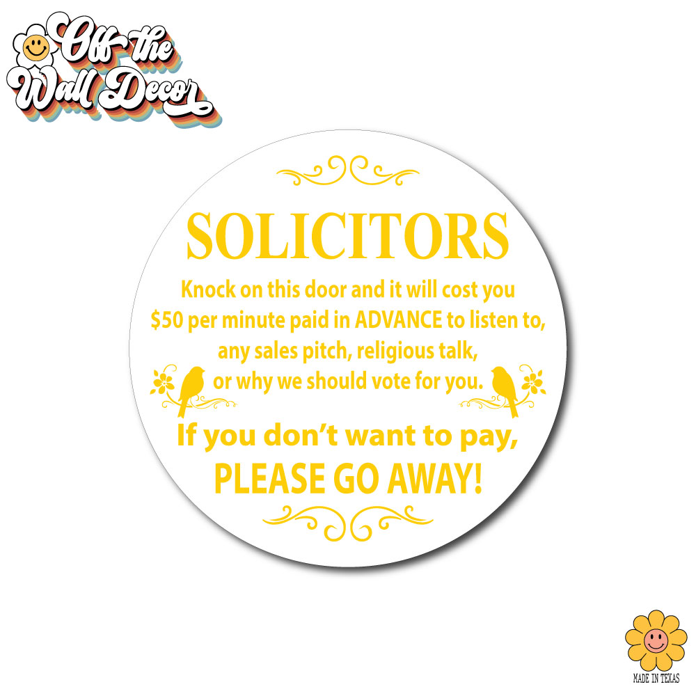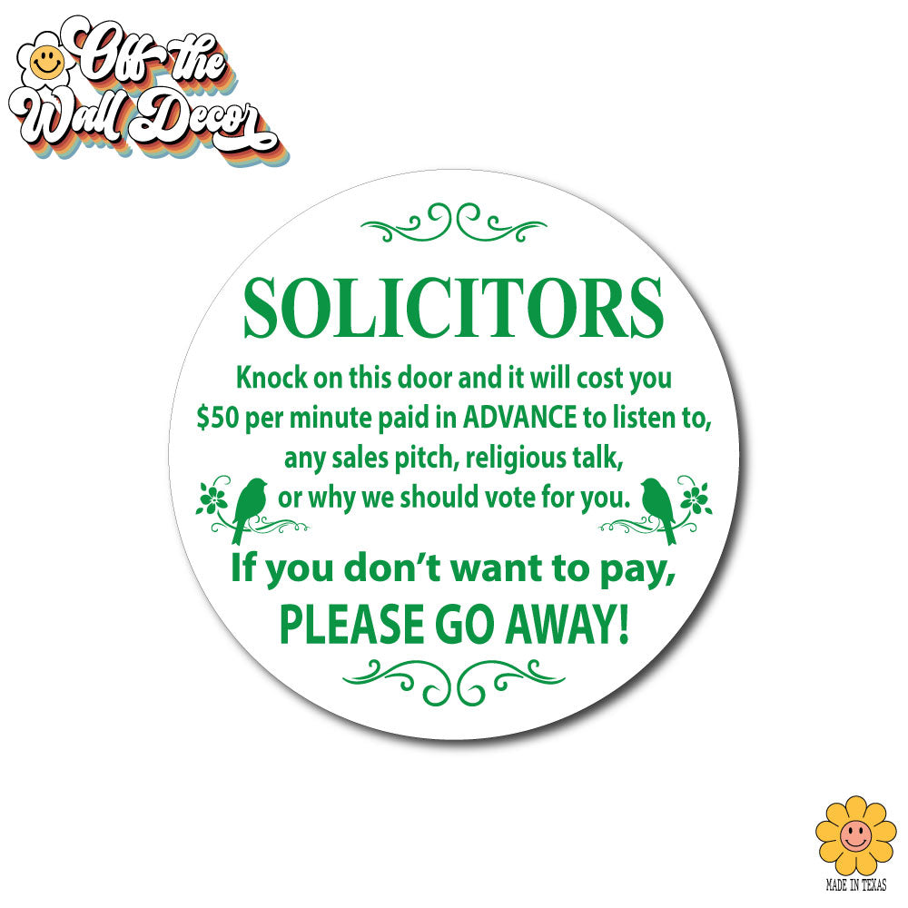 Humorous "No Soliciting" sign, front door sign, decorative door hanger